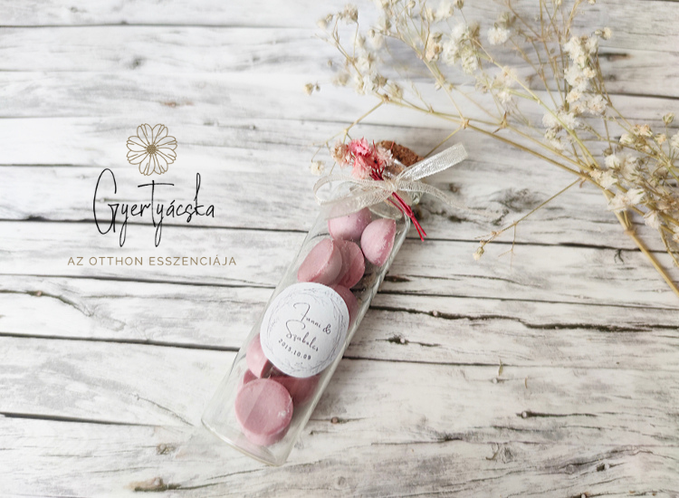 Apró cseppecskék üvegcsébe zárva. A pici üveg 8 g illatviaszt tartalmaz, mely 100% szójaviaszból készül, állatkísérletektől mentes, vegán, prémium anyagok felhasználásával. A szín, illat, dekoráció variálható. Az ár 50 db-ig érvényes, 50 db feletti rendelés esetén kérj egyedi árajánlatot. A megálmodott szín, illatot, és dekorácót írd le megjegyzésbe, vagy vedd fel velünk a kapcsolatot.