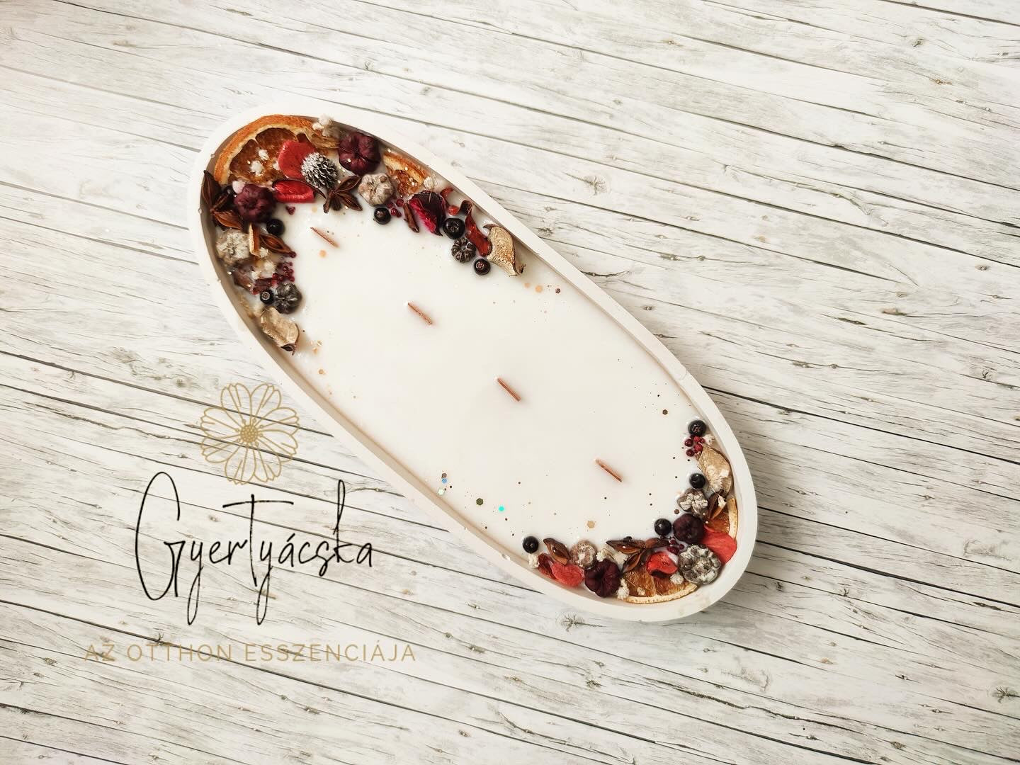 Ha nem szeretnél hagyományos adventi koszorút, válaszd ezt a különleges 4 darab fa kanóccal készült szójaviasz illatgyertyát egyedi formájú kerámiában, karácsonyi hangulatot idéző száraz virág díszítéssel . A fa kanóc ropogós, pattogós hangjával teszi még kellemesebbé és élvezetesebbé az intenzív téli illatokat. 360 g 100% szójaviasz, prémium illatanyag felhasználásával készült, vegán állatkísérletektől mentes termék.