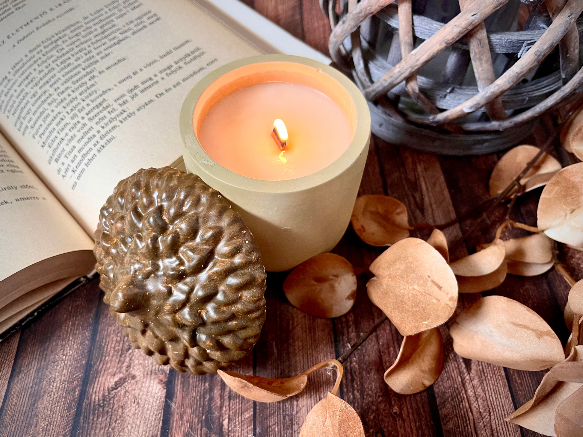 Fa kanócos szójaviasz illatgyertya egyedileg készült gomba kerámiában tetővel. A fa kanóc ropogós, pattogós hangjával teszi még kellemesebbé és élvezetesebbé az őszi illatokat. 140g szójaviasz, prémium illatanyag felhasználásával készült, vegán állatkísérletektől mentes termék.
