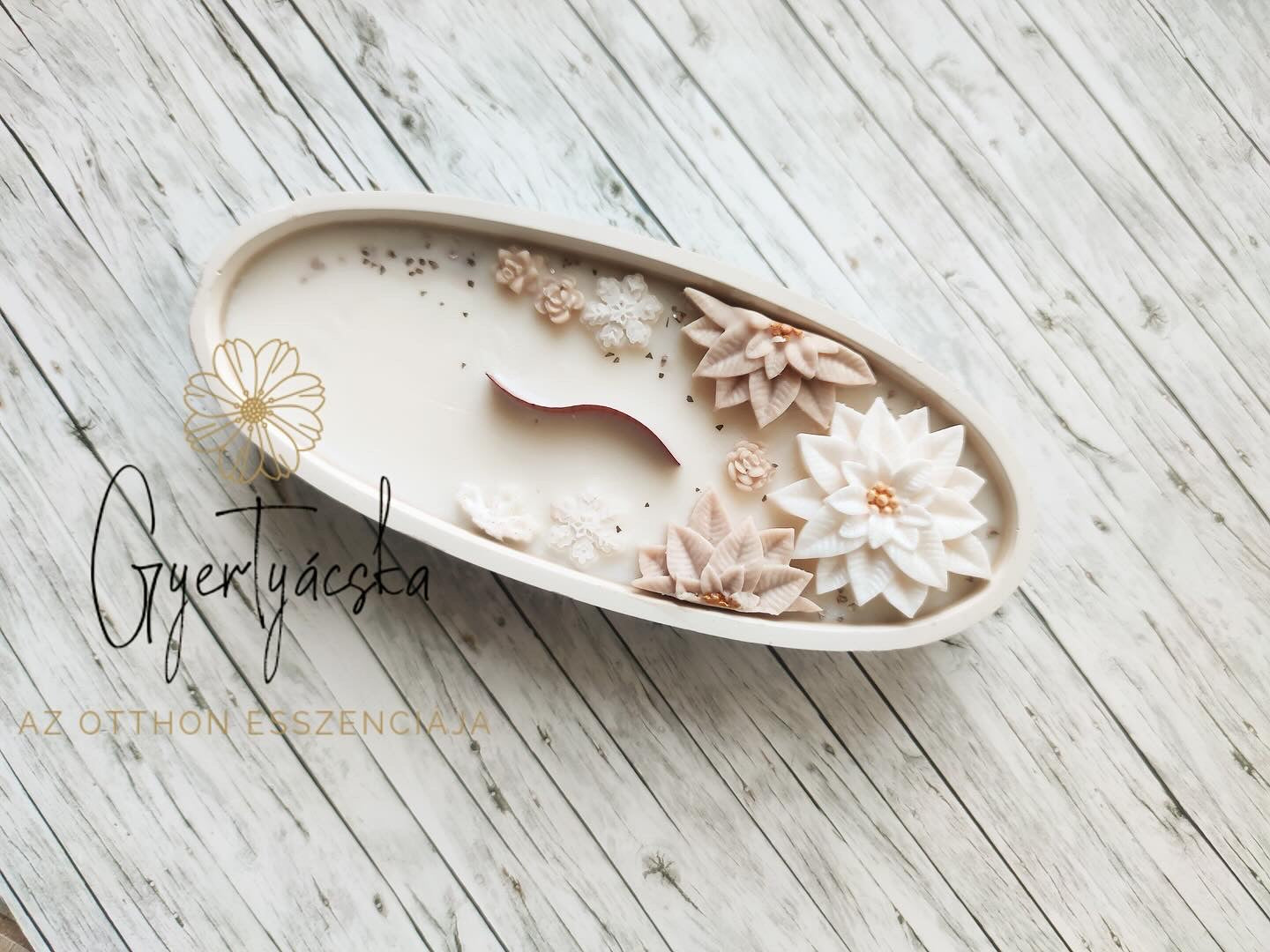 Ha szeretnél egy gyönyörű asztaldíszt, válaszd ezt a különleges extra széles, hullámos fa kanóccal készült szójaviasz illatgyertyát egyedi formájú kerámiában, karácsonyi hangulatot idéző viaszvirág díszítéssel . A fa kanóc ropogós, pattogós hangjával teszi még kellemesebbé és élvezetesebbé az intenzív téli illatokat. 230 g 100% szójaviasz, prémium illatanyag felhasználásával készült, vegán állatkísérletektől mentes termék.