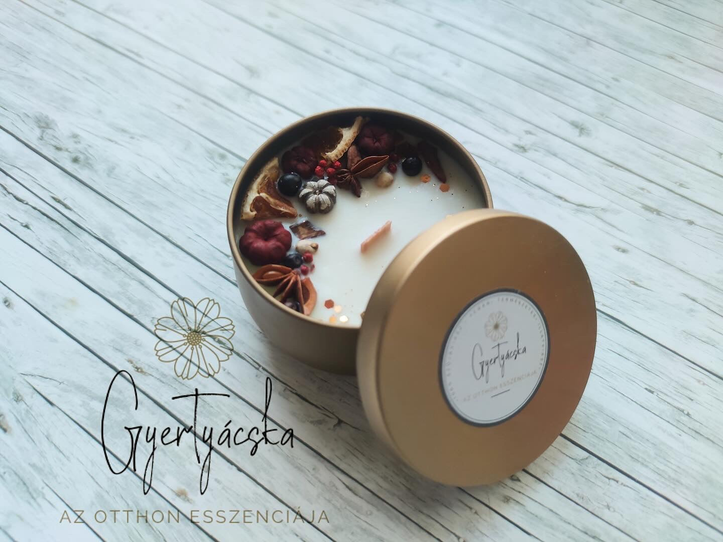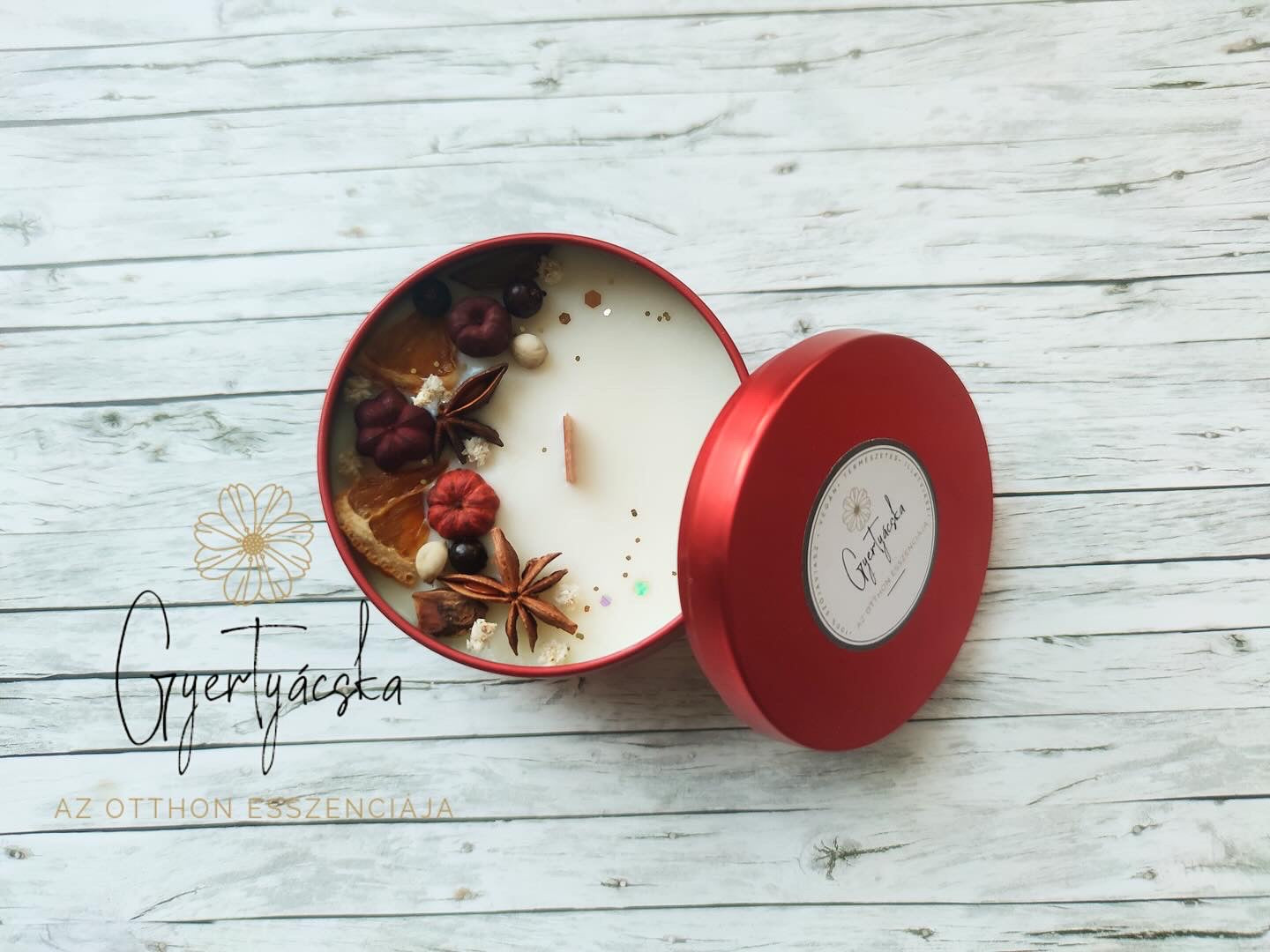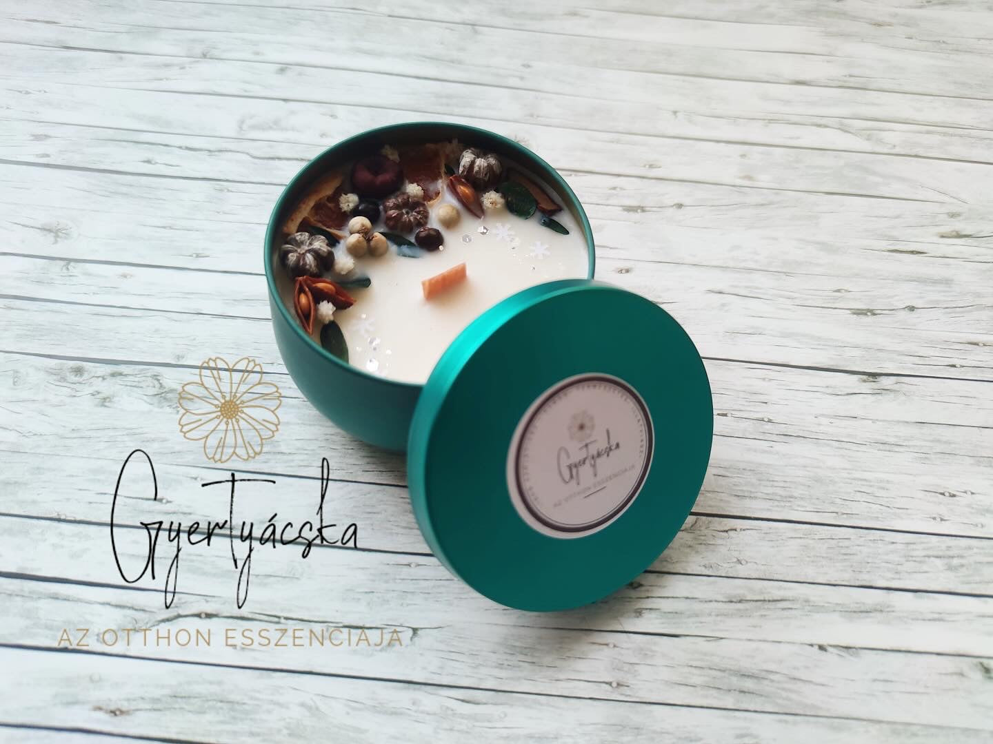 Fa kanócos szójaviasz illatgyertya elegáns fém dobozkában tetővel, karácsonyi hangulatot idéző száraz virág díszítéssel. A fa kanóc ropogós, pattogós hangjával teszi még kellemesebbé és élvezetesebbé az egyedi téli illatokat.160 g szójaviasz, prémium illatanyag felhasználásával készült, vegán állatkísérletektől mentes termék. Égési Idő: 40-45 óra