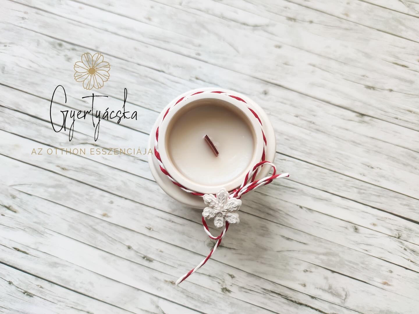 Fa kanócos szójaviasz illatgyertya egyedi formájú kerámiában . A fa kanóc ropogós, pattogós hangjával teszi még kellemesebbé és élvezetesebbé az intenzív téli illatokat. 50 g 100% szójaviasz, prémium illatanyag felhasználásával készült, vegán állatkísérletektől mentes termék.